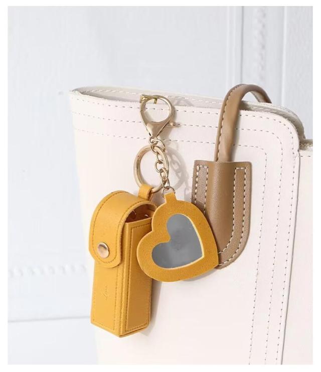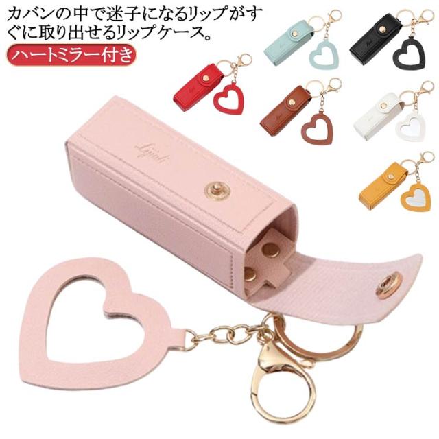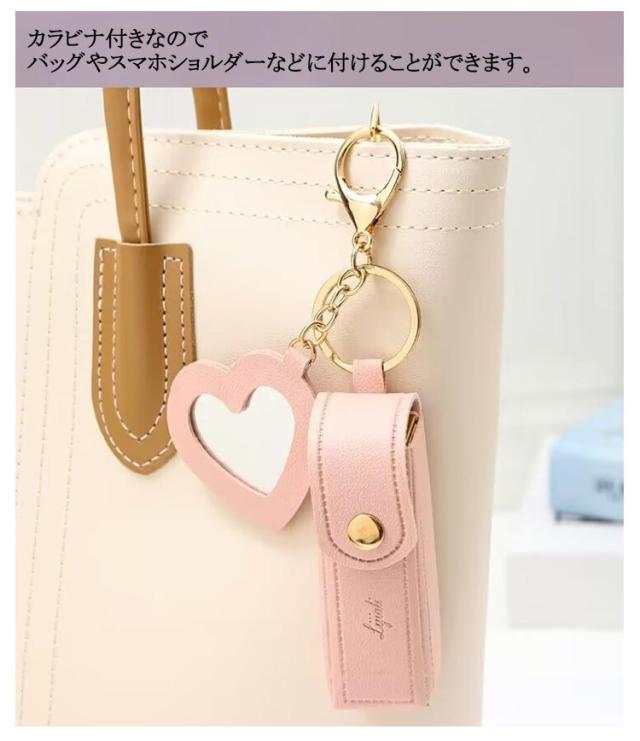 送料無料 リップケース バッグチャーム ハートミラー付き 口紅ケース キーホルダー ミラー搭載 リップホルダー 持ち運び 送料無料 リップポーチ 携帯 コンパクト 小さめ かわいい おしゃれ プレゼント