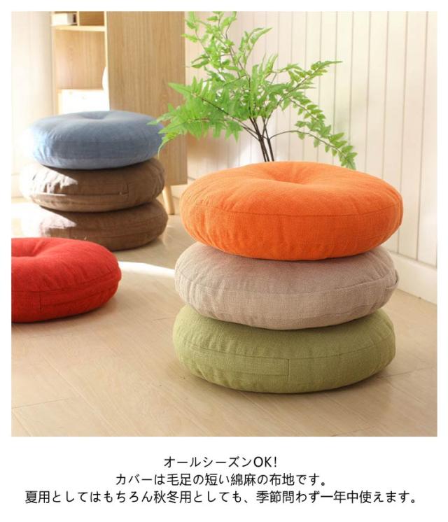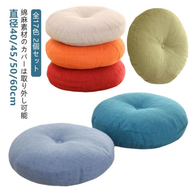 丸 円形 セット クッション 取り外し可 畳 2個 リネン 直径45cm 直径50cm ごろ寝クッション 40センチ カバー 直径60cm ラウンドクッション フロアクッション 麻 直径40cm チェアパッド 2個 丸型 和室 丸洗い 座ぶとん ナチュラル