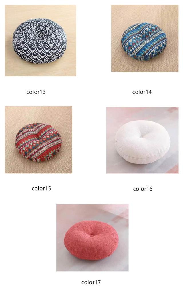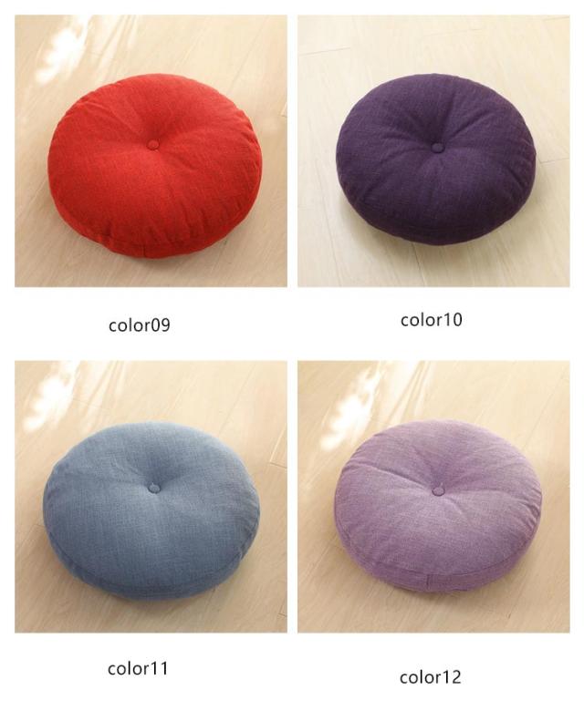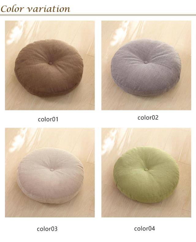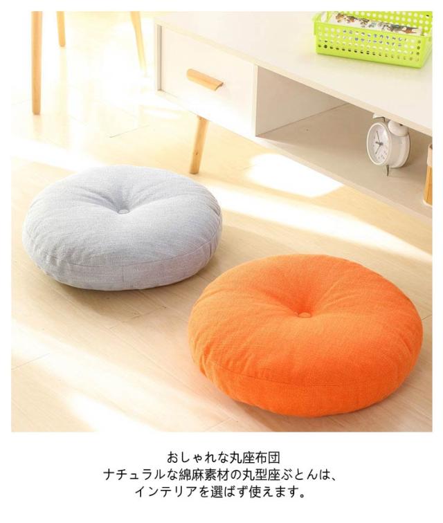 | 座布団 クッション 綿麻素材のカバーは取り外し可能 直径40/45/50/60cm 全17色 2個セット フローリングのリビングにも畳の和室にもOK!おしゃれな丸い座布団。 分厚いフロアクッションは、へたりにくいのにやわらかくてお尻にも癒し♪ 一度使うと普通の座布団には戻れません♪ ★在宅ワークの椅子用にも 床に置いて座る座卓用クッションとして、またパソコンデスクのOAチェアー用の大きめチェアマットとしても! テレワークで長時間のデスクワークにも最適の円形クッションです。 ★おしゃれな丸座布団 ナチュラルな綿麻素材の丸型座ぶとんは、インテリアを選ばず使えます。 人気の北欧風はもちろん和モダンやモロッカンなどのオリエンタル系、バリ風などのアジアンリゾート系にもなじみます。 ★使い方いろいろ円形クッション ローテーブル用としてジャストな高さの円クッション。 座布団にしたり、背もたれクッションにしたり、 お昼寝用の枕にしたり、いろいろな使い方ができます。 ★オールシーズンOK! カバーは毛足の短い綿麻の布地です。 夏用としてはもちろん秋冬用としても、季節問わず一年中使えます。 ★カバーが洗えるラウンドクッション コットンリネンの座布団カバーは取り外し可能で洗濯できます。 常に清潔に保てて気持ちいい丸いクッション! 洗濯機(弱)で洗えます。 | |