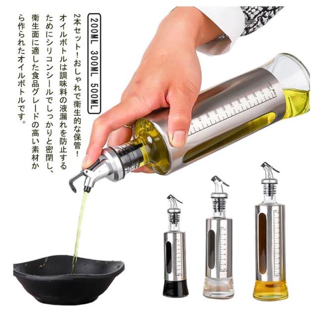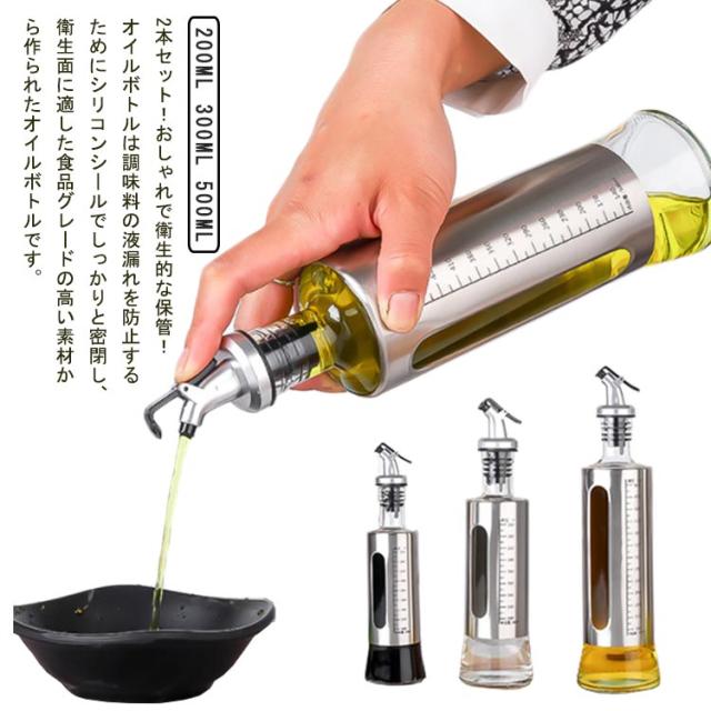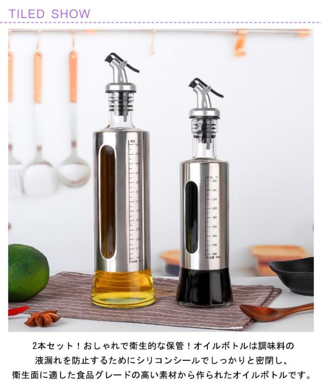 調味料ボトル オイルボトル 油さし 醤油ボトル 2本セット 醤油ボトル ガラス 酢ボトル オリーブオイル 目盛り付き オシャレ 耐熱ガラス 漏れ防止 液だれ防止 2本セット 液だれしない ソースボトル オイル差し 容器 業務用 家庭キッチン