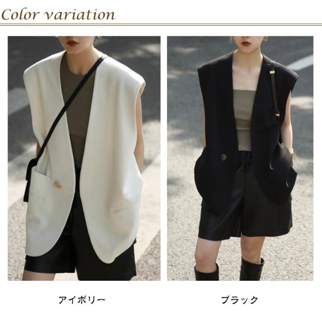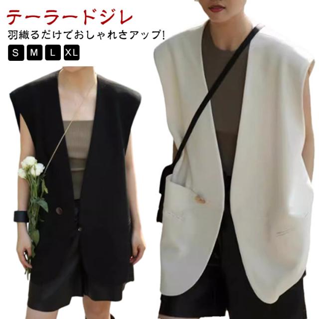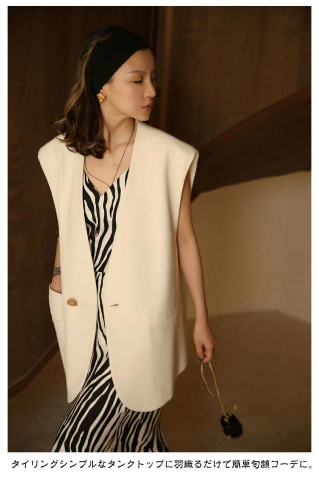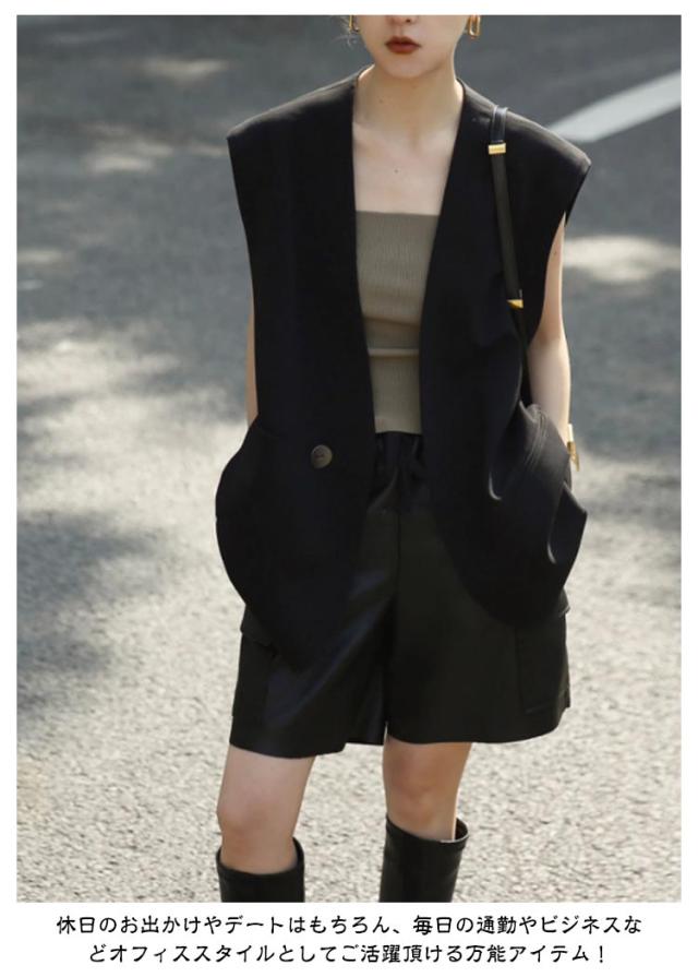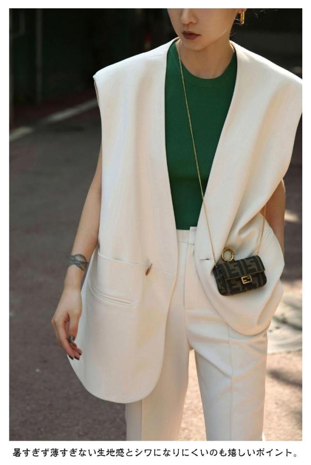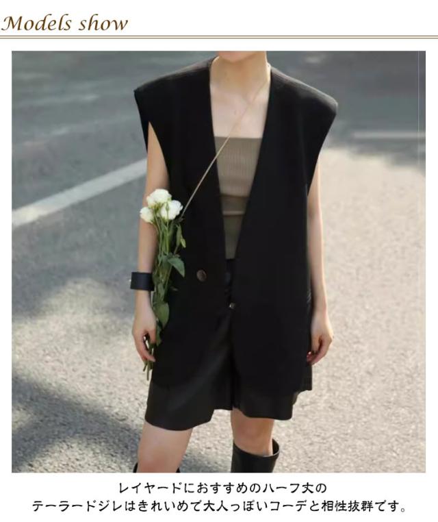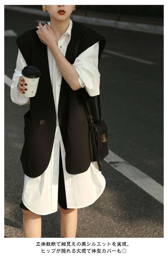 Vネック サマー ベスト ブレザー レディース ベスト スーツ テーラード ジャケット レイヤード 羽織り レディース 夏 秋 冬 ハーフ丈 体型カバー 春 テーラードジャケット ロングジレ ロングベスト スリット きれいめ カジュアル オフィス 重ね着