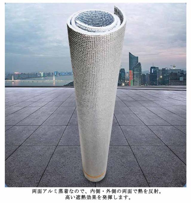 | エアコンの効率を高めて夏は涼しく冬は暖かい、断熱シートのアルミタイプ。 両面アルミ蒸着なので、内側・外側の両面で熱を反射。 高い遮熱効果を発揮します。 快適なクッション性と保温力、強力な防音効果を発揮します。 夏は遮熱・断熱・保冷効果で温度上昇を抑え、冬は冷気を遮って保温効果を高めます。 ハサミやカッターでお好きなサイズ・形にカットしてご利用いただけます。 お子様の遊び場マット・プレイマット・ペットの遊び場として床の傷防止に役立ちます。 | |