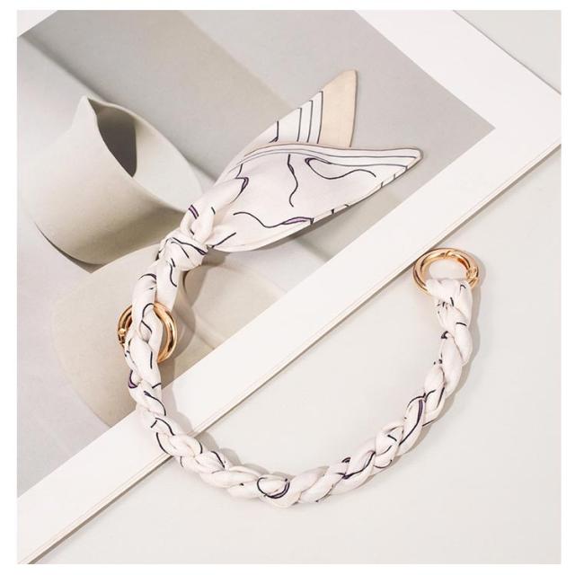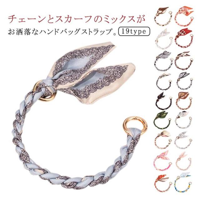 | チェーンとスカーフのミックスがお洒落なハンドバッグストラップ。 手持ちのバッグに付け替えるとあっという間に違うバッグに大変身! ショルダーが付け替え可能なハンドバッグやトートバッグ、手提げバッグなどにお使いいただけます。 | |
