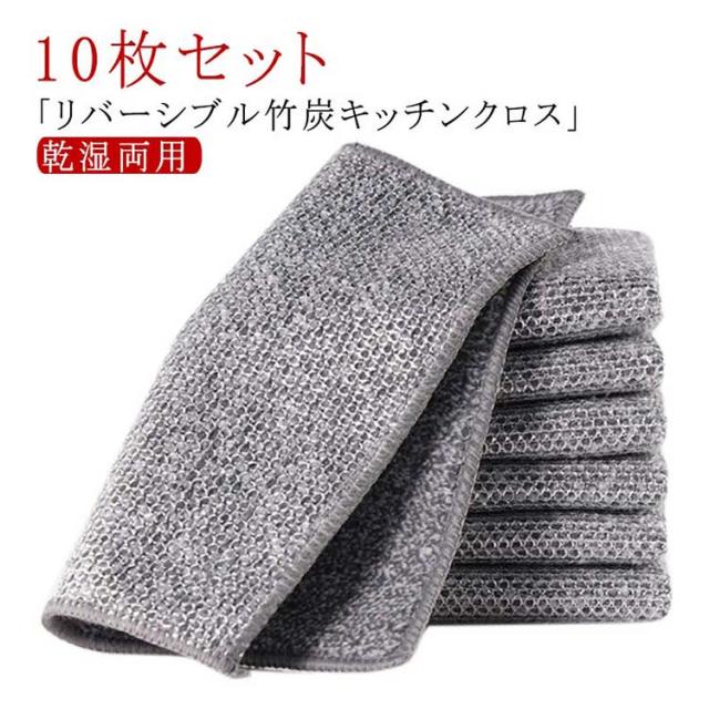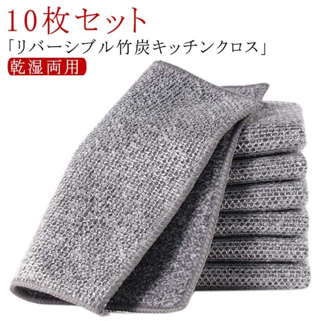 防油 吸水性 銀糸入り 両面 10枚セット 竹炭 両面使用 リバーシブル キッチンタオル 油汚れ対策 キッチン掃除 耐熱 乾湿両用 キッチンクロス ワイヤーふきん ふきん キッチン雑巾 食器洗い 風呂掃除 リバーシブル 布巾 家庭用