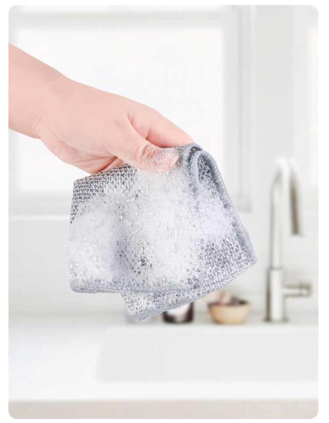 | 10枚セット 「リバーシブル竹炭キッチンクロス」 リバーシブル仕様、食器洗い時間を短縮! A面は銀糸入り錫箔素材。表面のコーティングを傷つけずに強力に汚れを除去。 B面は竹炭繊維。高い吸水性で汚れを簡単に拭き取れる。 両面使用、洗浄力アップ。 優れた吸水性、徹底的に拭き取る、製品の表面を傷つけずに、フードやキッチンなどの頑固な汚れを除去。 | |