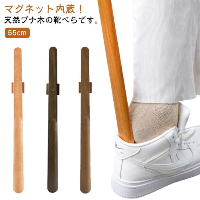 おしゃれ ロング ナチュラル 玄関 靴ベラ 55cm 木製 マグネット式 靴べら 立ったまま 履ける くつべら 旅館用 オフィス用 洋風 木製 普段使い ブナ木 和風 ホテル用 北欧 敬老の日 父の日 プレゼント 実用的