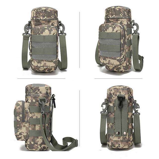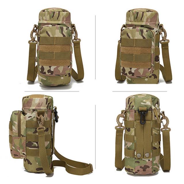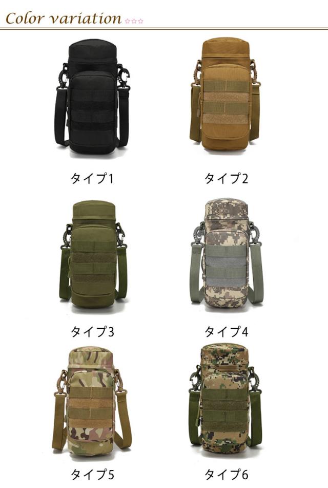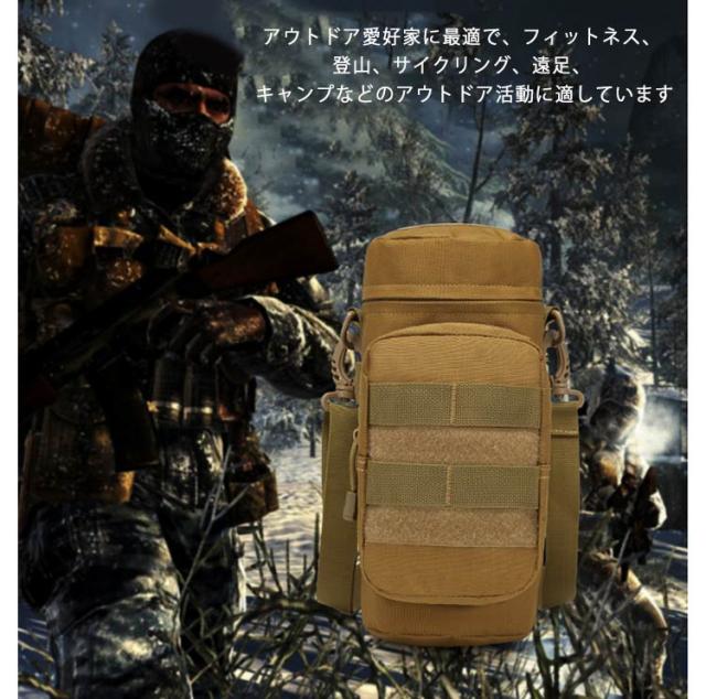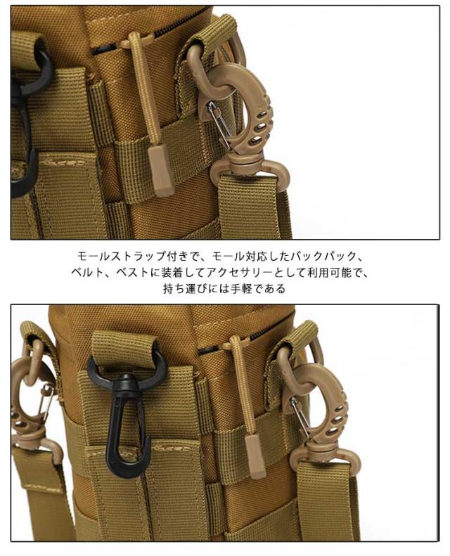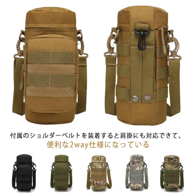 斜めがけバッグ 水筒カバー アウトドア 多機能 スマホ収納 Molleモール対応 ペットボトルホルダー 水筒ケース 水筒ホルダー 水筒ポーチ 鍵 小物入れン 肩掛け ショルダー 水筒ケース 迷彩柄 キャンプ ストラップ付 スポーツ 散歩