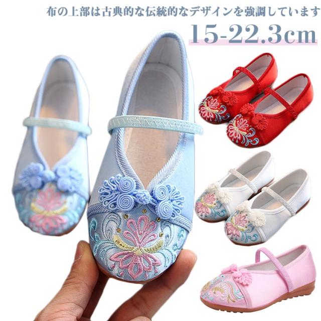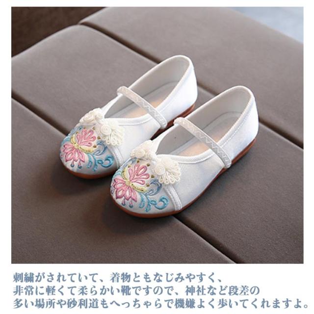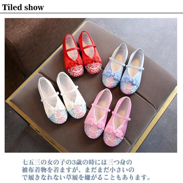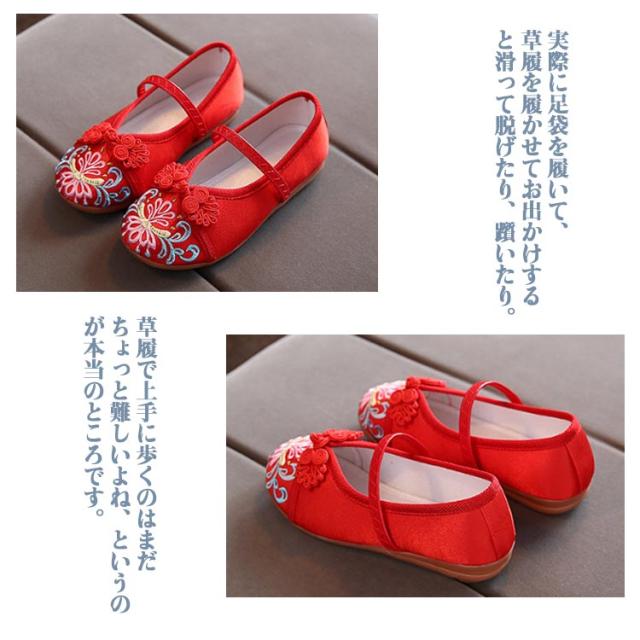 刺繍 女の子 七歳 痛くない 草履のかわりに履ける キッズ 靴 女児 可愛い 子供 子供 かわいい お正月 草履 子供 こども 三歳 和柄の靴 着物 和装 和服 履物 履きやすい フラットシューズ