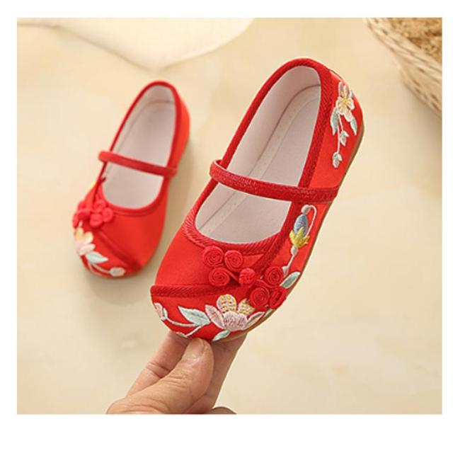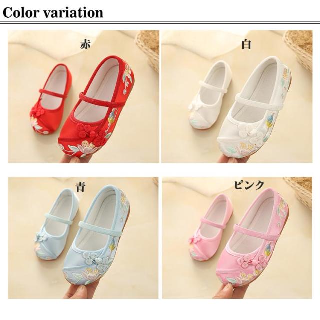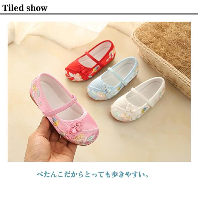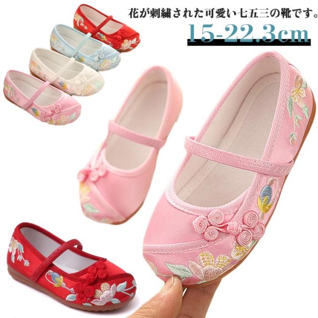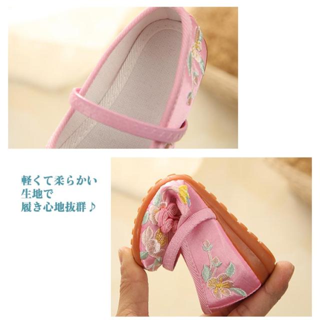 子供用 赤 お正月 七五三 靴 子供靴 草履のかわりに履ける レッド 楽ちん靴 草履 ぺたんこ 刺繍 和柄 ピンク 和柄 女の子 歩きやすい 痛くない 和服 履物 着物 和装 チャイナ 靴 漢服靴 脱ぎ履き便利