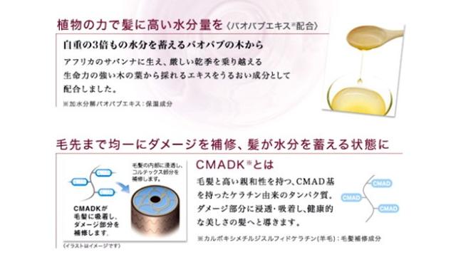 使用方法 | タオルドライ後、適量を手のひらでよくのばし、毛先中間〜毛先にかけて塗布し、髪全体によくなじませます。 | ||