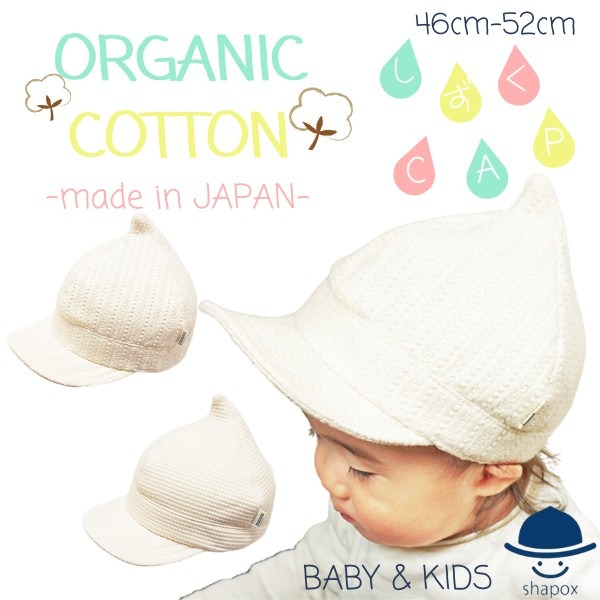 オーガニックコットン しずくキャップ ベビー キッズ 46〜52cm 日本製 国産 あご紐付き オーガニック 綿100% とんがり帽 キャップ つの どんぐり ナチュラル 柔らか 紫外線対策 日よけ 赤ちゃん 男の子 女の子 connectM SHAPOX オールシーズン 春 夏 秋 帽子 33-1005