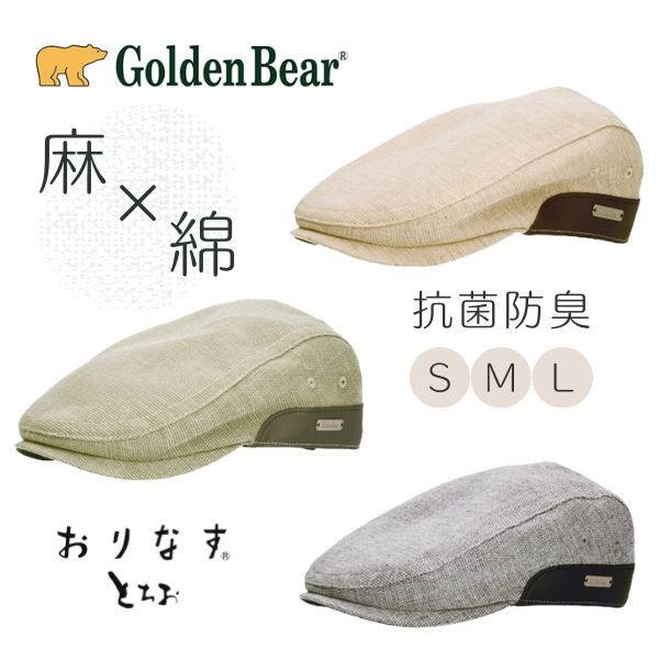 Golden Bear おりなすとちお 綿麻 ハンチング S〜Lサイズ 小さいサイズ 抗菌防臭 通気性抜群 国産生地 サイズ調整 鳥打帽 紫外線対策 UVケア 日よけ メンズ 男性 紳士 父の日 お父さん 敬老の日 春 夏 秋 帽子 ゴールデンベア 242-027055