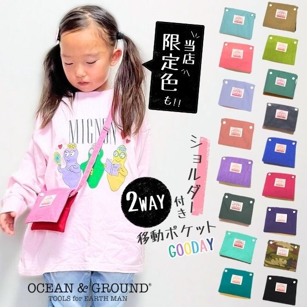当店限定色 Ocean&Ground 2WAY 移動ポケット GOODAY キッズ ジュニア ポケットポーチ クリップ式 ショルダー付き ポシェット ティッシュ入れ ハンカチ入れ 無地 子供用 男の子 女の子 オーシャンアンドグラウンド 1815904