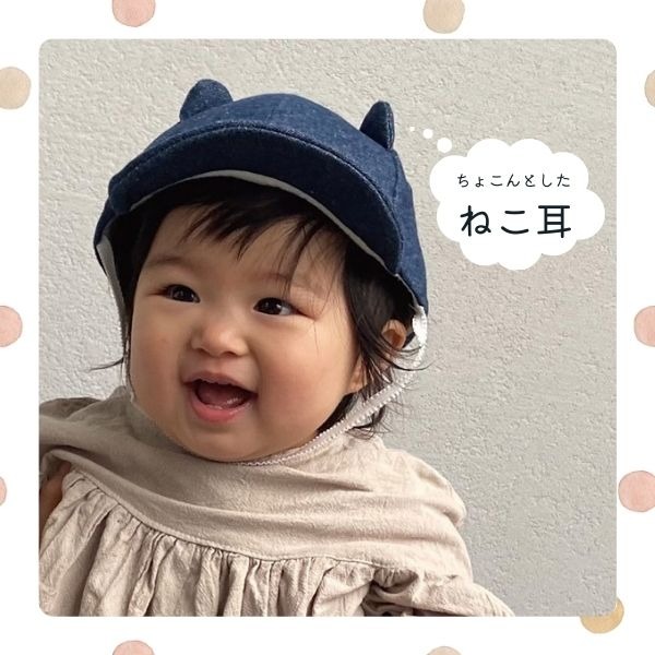 GRIN BUDDY ねこ耳 キャップ キッズ 50〜54cm 野球帽 コットン100% 消臭 抗菌 やわらか サイズ調整 ワイヤー入り 紫外線対策 UVケア 日よけ 子供 赤ちゃん 男の子 女の子 春 夏 秋 オールシーズン グリンバディ 帽子 GF-9259 LF-9259