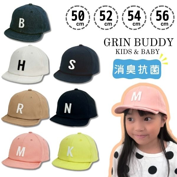 GRIN BUDDY コットン ロゴキャップ ベビー キッズ ジュニア 50〜56cm キャップ 野球帽 綿100% やわらか 消臭 抗菌 サイズ調整 シンプル おしゃれ 子供 男の子 女の子 紫外線対策 日よけ 春 夏 秋 オールシーズン グリンバディ 帽子 GF-10731 LF-10732