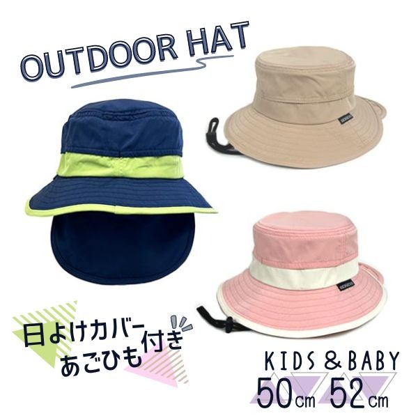 HB 日よけカバー付き アウトドアハット キッズ ベビー 50cm 52cm フラップ付き ネックカバー あご紐 バケットハット サファリハット アドベンチャーハット メッシュ 紫外線対策 UVケア 日よけ 子供 赤ちゃん 男の子 女の子 春 夏 秋 オールシーズン 帽子 23149H