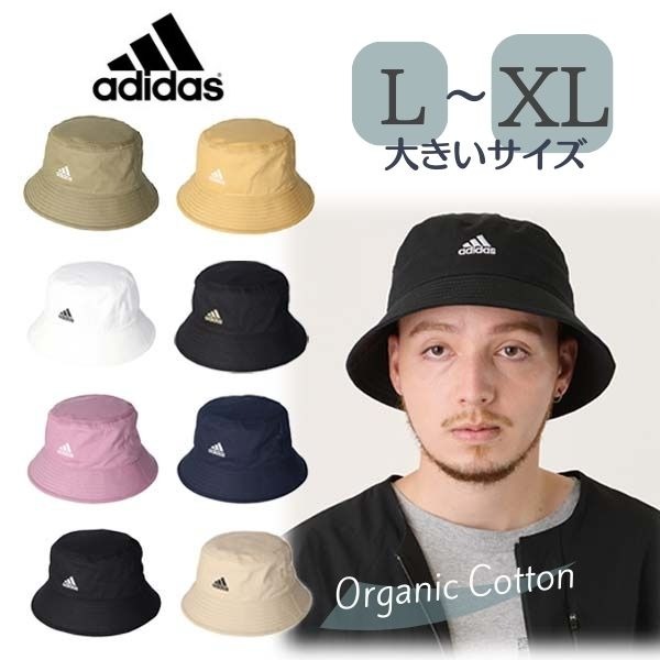 adidas コットン バケットハット L〜XLサイズ 大きいサイズ サファリハット ロゴハット オーガニック 手洗い 折りたたみ 吸湿 速乾 アウトドア 紫外線防止 UVケア 日よけ メンズ レディース ユニセックス 春 夏 秋 オールシーズン アディダス 帽子 117-111701