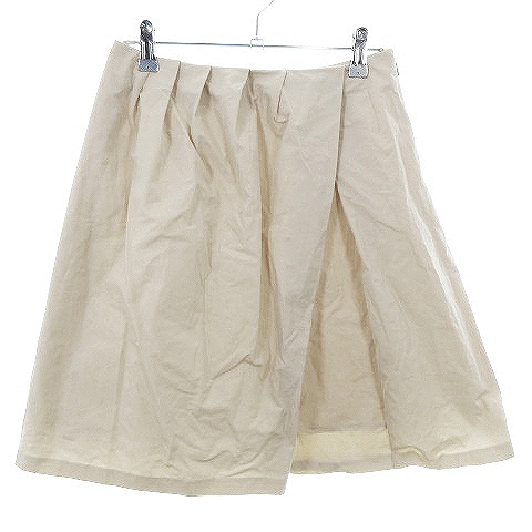 【中古】アンタイトル スカート フレア ひざ丈 サイドファスナー タック 薄手 無地 1 ベージュ レディース