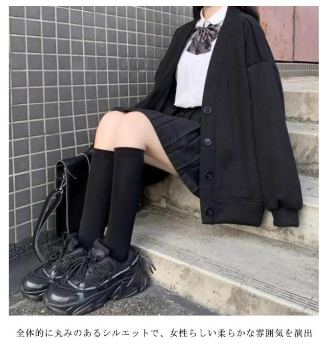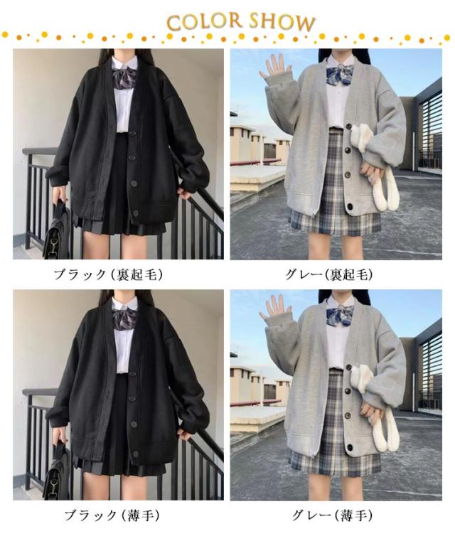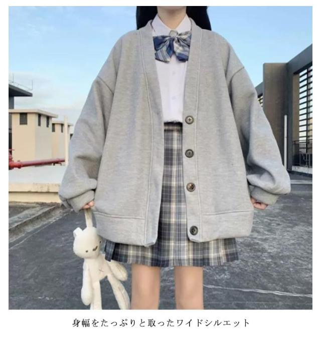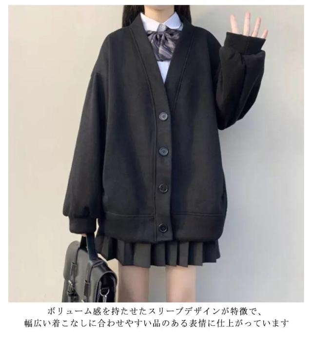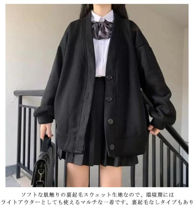 スクールカーディガン 学生 裏起毛と薄手2タイプ スウェット カーディガン Vネック レディース 女子 高校生 制服 スウェットカーディガン 秋 冬 長袖 トップス 羽織り ボタン ゆったり ボリューム袖 パフ袖 秋アウター 【送料無料】