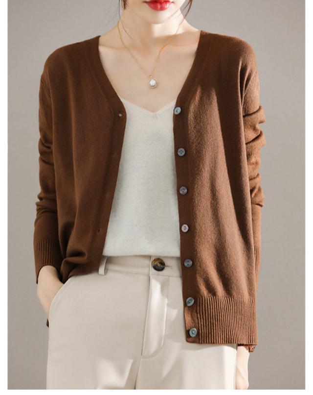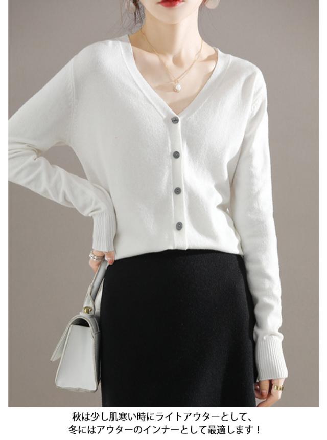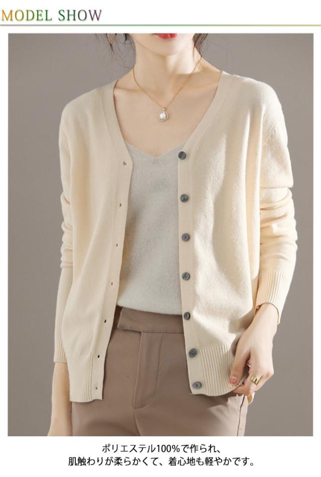 カーディガン レディース Vネック ニットカーディガン トップス 無地 セーター 厚手 オフィス ゆったり 春秋 カジュアル ビジネス お洒落 オフィス きれいめ 羽織り 前開き 通勤 通学 送料無料