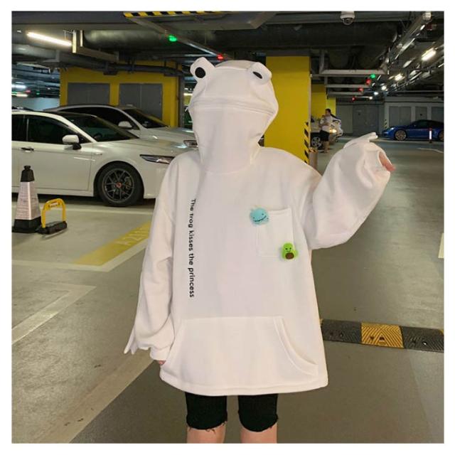 カエル パーカー 蛙 かえる トップス レディース メンズ 裏起毛 フード付き ロングパーカー プルオーバー 面白い トップス ユニセックス ジッパー付き ゆったり 秋服 秋冬 ホワイト ブラック グリーン
