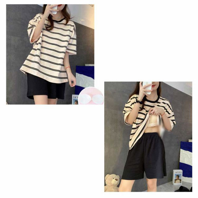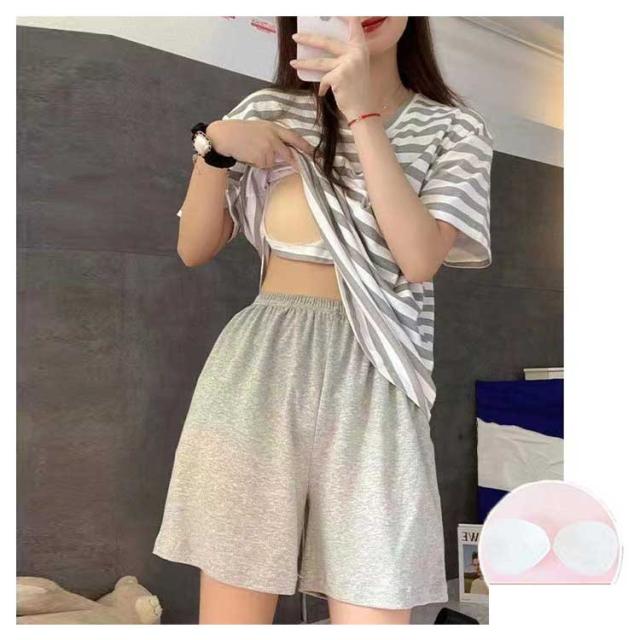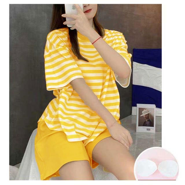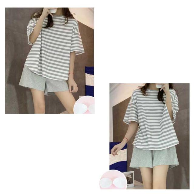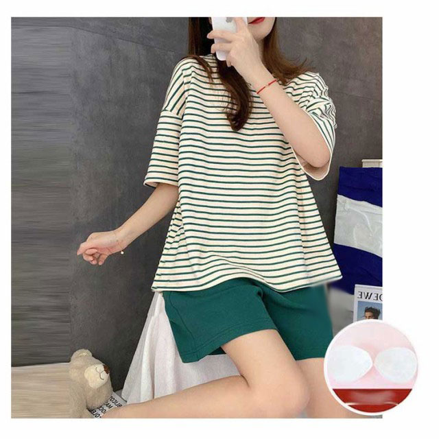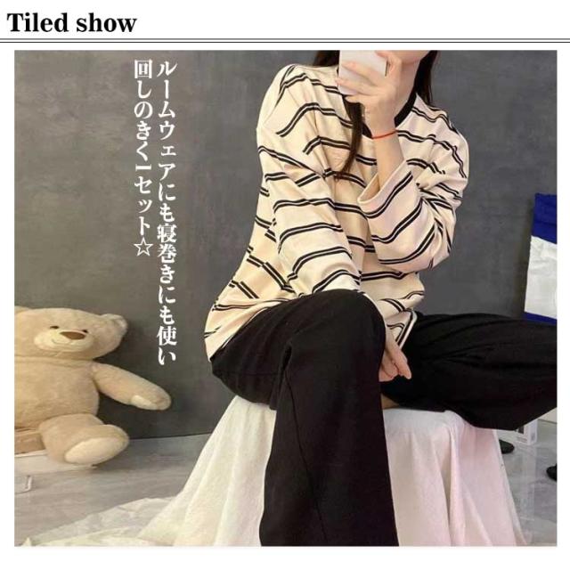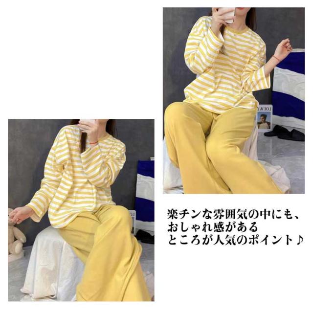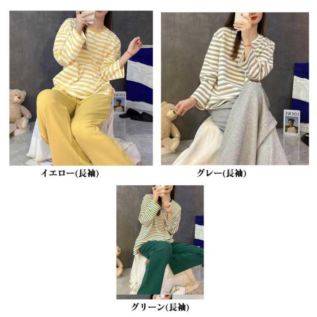 カップ付き パジャマ レディース 上下セット ルームウェア 部屋着 ボーダー柄 半袖 長袖 Tシャツ ショートパンツ ロングパンツ 2点セット ナイトウェア リラックス 寝間着 寝巻き 可愛い 通気性 柔らかい 女性用 婦人用 母の日 春 夏 秋 冬 送料無料 M-4XL