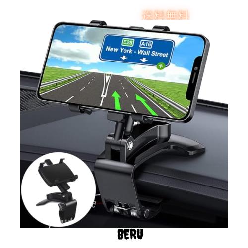 【???4業界初クリップ式】強力なスプリングクリップを使用して、ダッシュボードの縁やサンバイザーやバックミラーなどに取り付けます。視野を確保:運転中に視界をそらす必要がないため、GPSを使用したり話したりするときに無制限の視野を確保できます。より安全な運転: 頭を下げて運転することは禁止されています,ダッシュボードのスマホホルダーはドライバーの視界の前にあります。