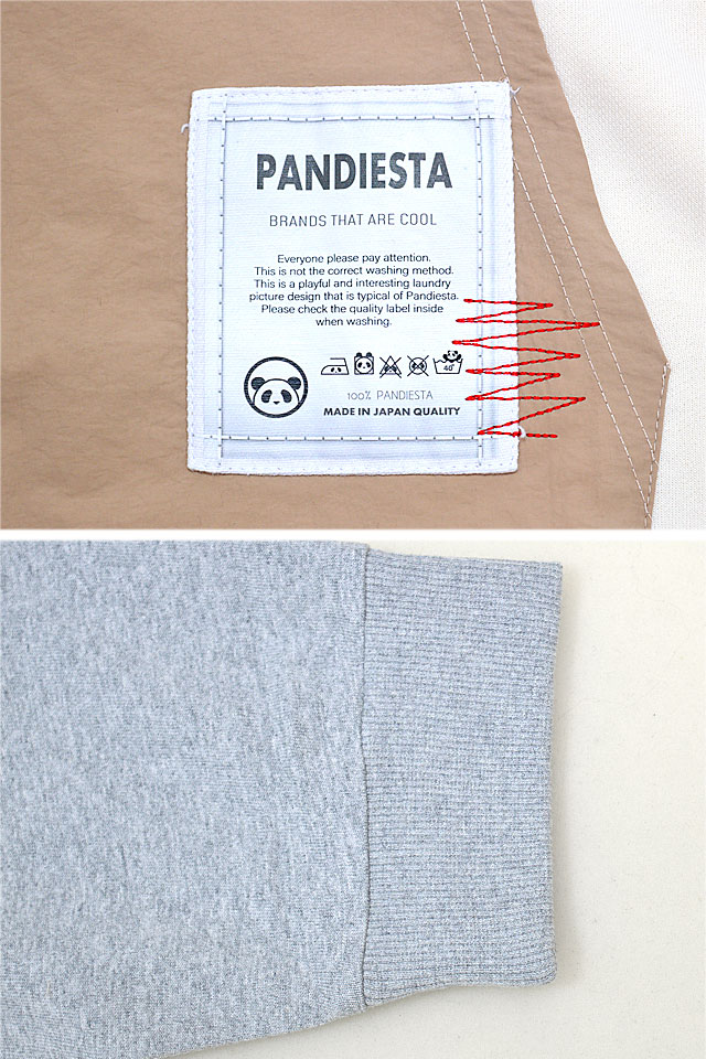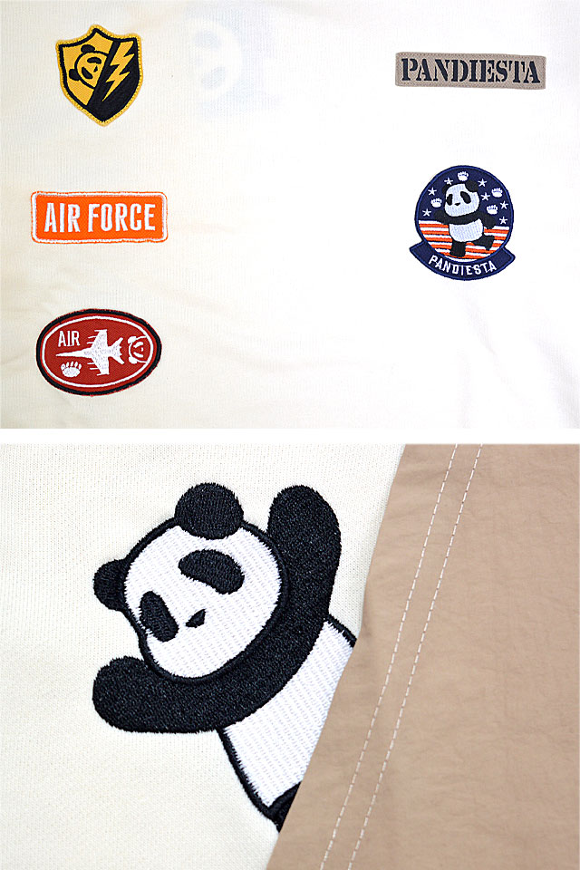 和柄ブランド【錦】の姉妹ブランドとして誕生した、お茶目なパンダをモチーフとした【PANDIESTA JAPAN】より「ミリタリーフェイクレイヤードスウェット(564950)」のご紹介です。 ふんわりとしたライトスウェットをボディーに採用し、一枚で重ね着を楽しめるフェイクレイヤードTシャツを製作しました。 パンディエスタのオリジナルボディはクオリティが高く、繰り返し着用、洗濯していただいても型崩れしません。 フロントにはミリタリーテイストをプラスしたパンディエスタの刺繍ワッペンを縫い付けました。 身頃にはポケットが縫い付けられており、中からパンダが顔を覗かせています。 背中のロゴには掠れプリントを用い、ヴィンテージ感をプラスしました。 | |||||||||||||||||||||||||