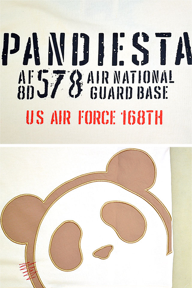 フロントにはミリタリーテイストをプラスしたパンディエスタの刺繍ワッペンを縫い付けました。