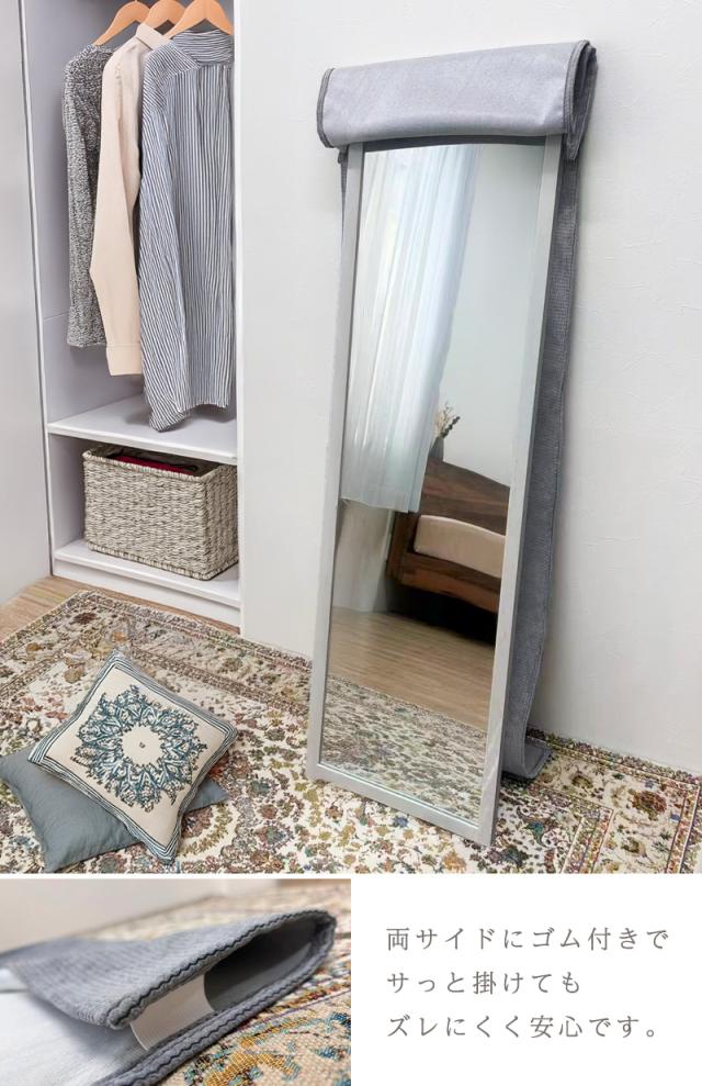 スタンドミラー カバー おしゃれ 全身鏡 姿見 幅40 丈160 シンプル 北欧 お洒落 和風 ほこり防止 埃よけ インテリア 汚れ防止 目隠し ドビー 1人暮らし 日焼け防止 風水 保護カバー 鏡カバー 傷防止 キズ防止 防塵カバー 高級感 取付け簡単 取り外し簡単 掛けるだけ