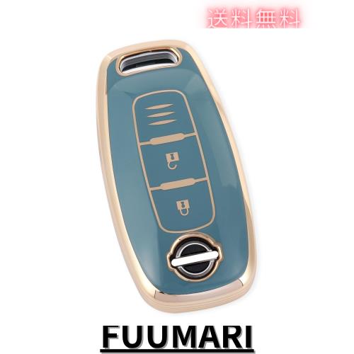 [YANMW] 新型 エクストレイルキーカバーサクラキーケース適合日産アリアスマートキーケース(ブルー)