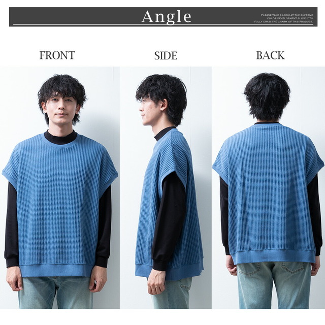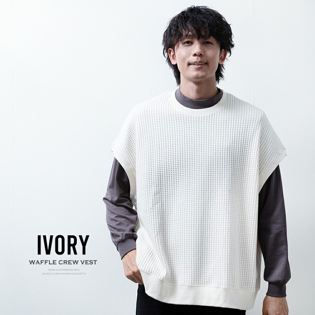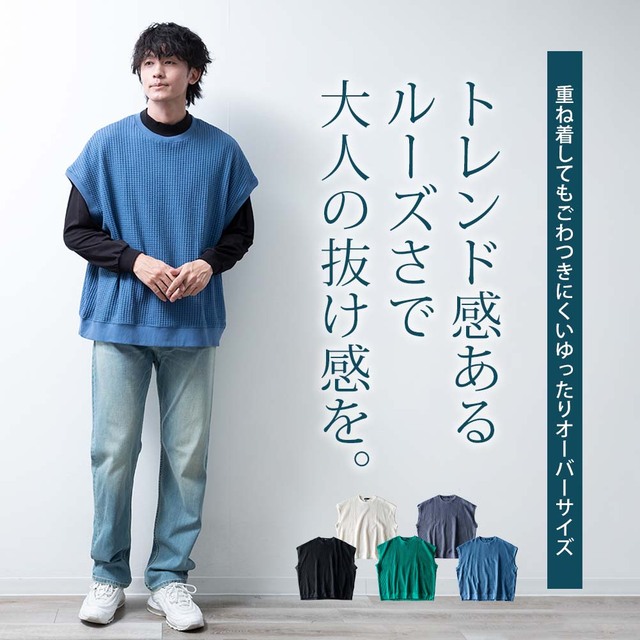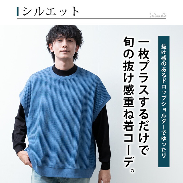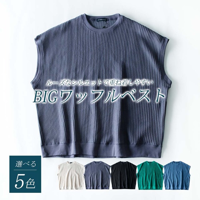 ベスト メンズ ノースリーブ クルーネック ワッフル ゆったり オーバーサイズ ニットベスト トップス チョッキ お洒落 サマーニット ジレ JP621004 綿 春 チャコール ホワイト 秋冬 ジレベスト アメカジ プレゼント ビックシルエット