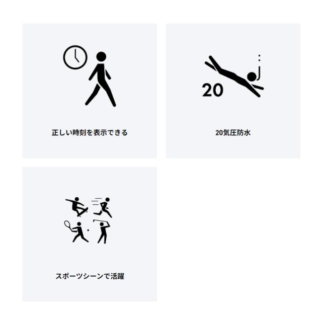 マリンスポーツや水泳などにも安心して使用できる20気圧防水のスポーツウオッチです。また、世界5局の電波に対応するマルチバンド5電波受信機能を搭載しています。