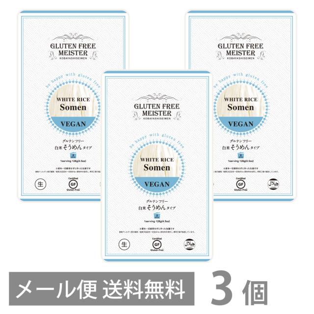 グルテンフリー 白米 そうめん タイプ 128g ×3個セット メール便 送料無料 GFM 素麺 ソーメン 小麦粉不使用 小麦アレルギー 米粉麺 国産
