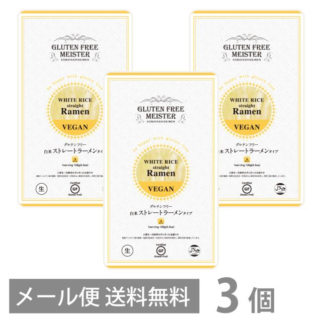 グルテンフリー 白米 ストレートラーメン タイプ 128g ×3個セット メール便 送料無料 GFM ラーメン 小麦粉不使用 小麦アレルギー 米粉麺 国産