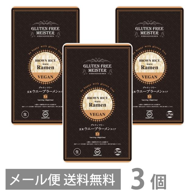 グルテンフリー 玄米 ウェーブラーメン タイプ 128g ×3個セット メール便 送料無料 ラーメン ちぢれ麺 小麦粉不使用 生麺