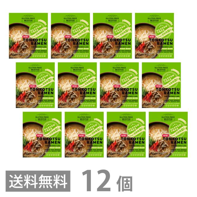 グルテンフリー とんこつ風ラーメン スープ付 113g ×12 送料無料 GFM インスタント 豚骨 らーめん 小麦粉不使用 ベジタリアン 生麺 米粉麺 国産