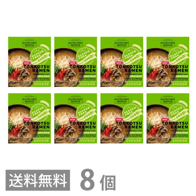 グルテンフリー とんこつ風ラーメン スープ付 113g ×8 送料無料 GFM インスタント 豚骨 らーめん 小麦粉不使用 ベジタリアン 生麺 米粉麺 国産