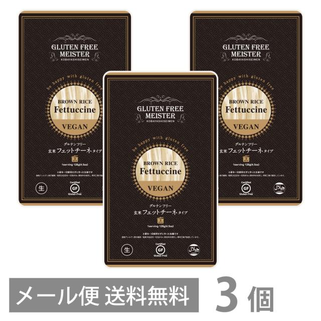 グルテンフリー 玄米 フェットチーネ タイプ 128g ×3個セット メール便 送料無料 GFM パスタ 小麦粉不使用 生麺 生パスタ 米粉麺 国産