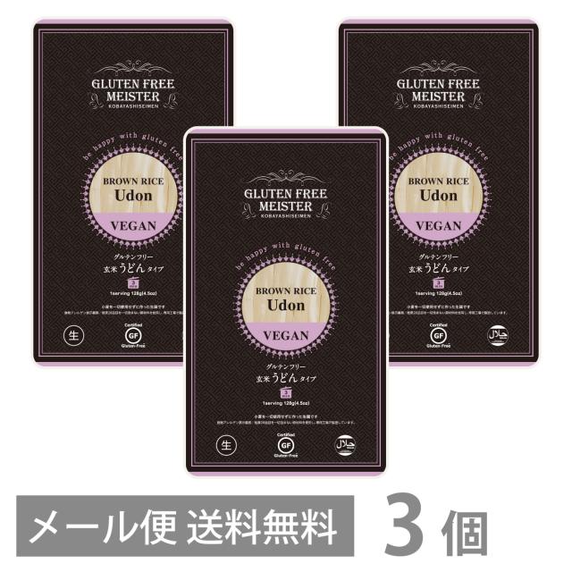 グルテンフリー 玄米 うどん タイプ 128g ×3個セット メール便 送料無料 小麦粉不使用 生麺