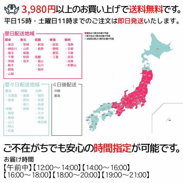 平日15時、土曜11時までのご注文は即日配送 3,980円(税込)以上のご注文で送料無料