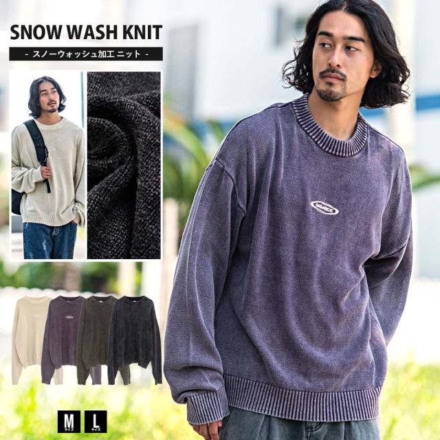 ニット メンズ セーター ブランド おしゃれ 大きいサイズ Noble スノー加工 スノーウォッシュ フェード加工 古着 ヴィンテージ メランジニット トレーナー 暖かい あったか 防寒着 20代 30代 40代 ユニセックス 男性 男 服 秋 冬 秋冬 秋服 ファッション [N24-520-41W]