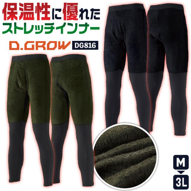 アンダーパンツ 秋冬 インナーパンツ レギンス ストレッチ 保温 暖かい 防寒着 防寒服 作業着 作業服 スポーツ メンズ レディース ブラック カーキ M L LL 3L D.GROW クロダルマ ネコポス kd-dg816