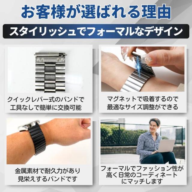 【22mm スマートウォッチバンド ステンレス製マグネット吸着バンド】この交換バンドは、工具不要で簡単に装着・交換できる便利さが特徴です。