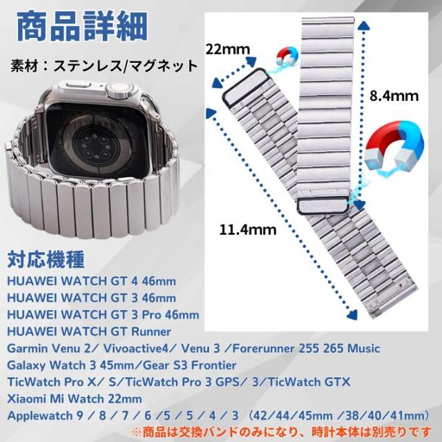 【22mm スマートウォッチバンド ステンレス製マグネット吸着バンド】