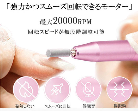 弊社のネイルマシンには厳選された高品質なアルミ合金を採用しており、効率的に熱を放散することができ、ネイルマシンが長時間動作しても本体が熱くなりにくいため、安心してご使用いただけます。また、騒音と振動を低減可能な最新モーターモデルを使っており、使用中は非常に静かで振動が少なく、より上手くネイルの形を整えるのはもちろん、長時間の使用による手の不快な痛みも防止します。人間工学に基づいたデザインで手にぴったりとフィットし、簡単に快適な体験をお楽しみいただけます。