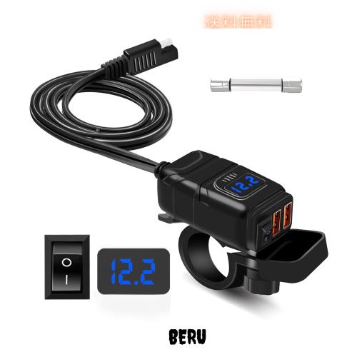 offeree バイクUSB電源 バイク用 USB 防水 急速充電 【2USBポート出力 電源スイッチ 電圧計】SAE ニューズ 多重保護 DC12V-24V バイク 大