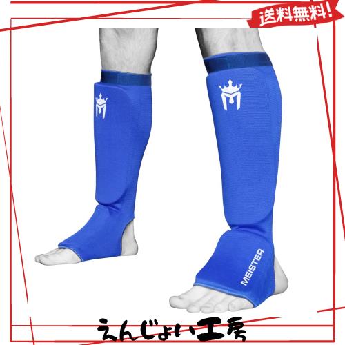 MMA キックボクシング 正規品 Meister レガース エラスティックパッド レッグガード(ペア) - 青 - Small/Medium