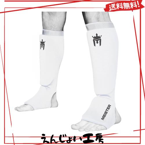 MMA キックボクシング 正規品 Meister レガース エラスティックパッド レッグガード(ペア) - 白 - Large/X-Large