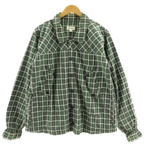 【中古】DIESEL ジャケット ステンカラー ロゴ刺繍 オーバーサイズシルエット チェック 緑 グレー オフ白 ピンク S